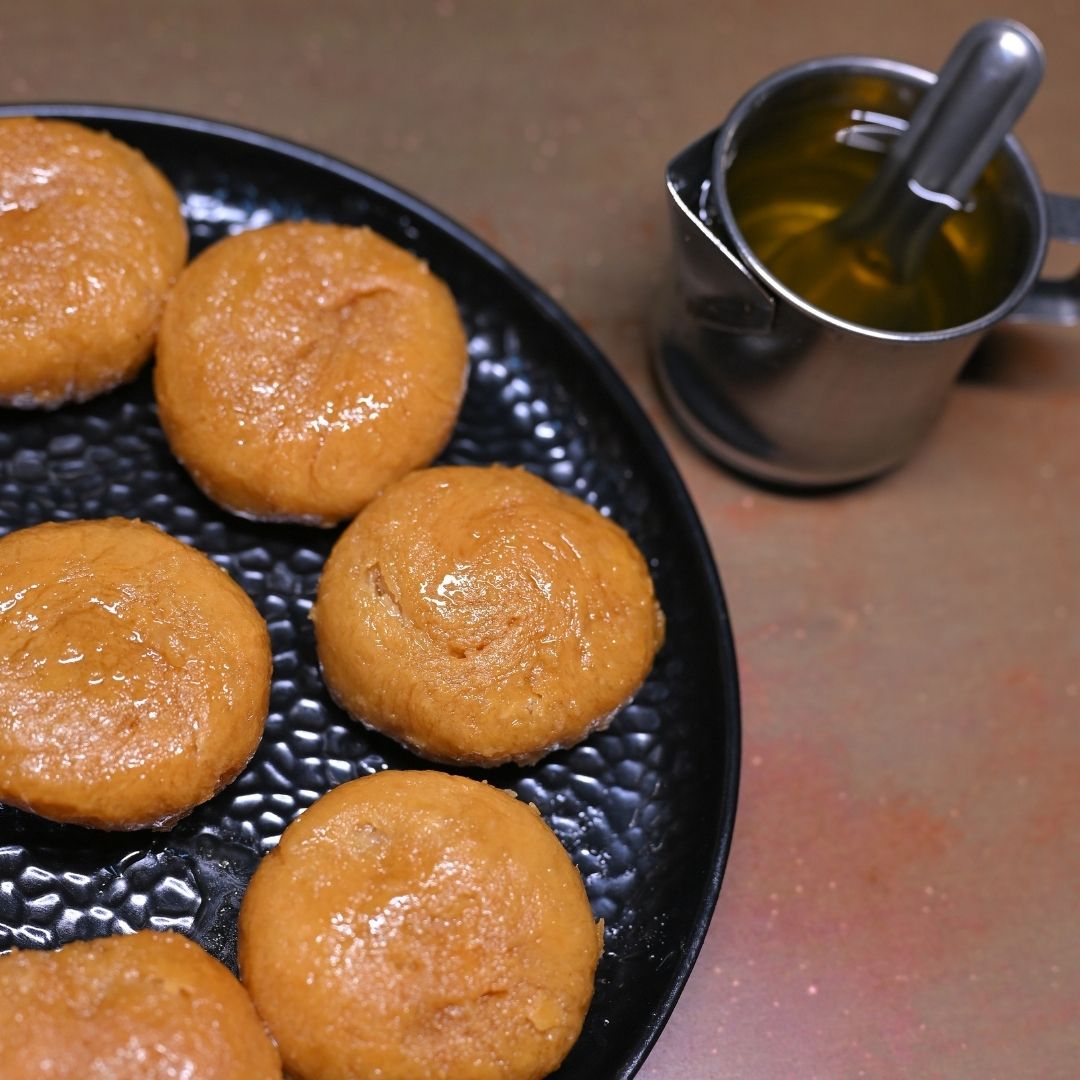A rich, flaky South Indian sweet made with pure ghee, slow-cooked to golden perfection and soaked in light sugar syrup for a melt-in-the-mouth taste.