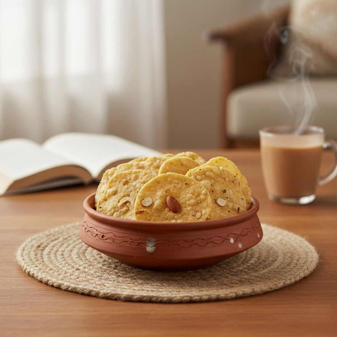 Saggubiyam Chekkalu (Sabudana Rice Crackers) are traditional Andhra-style crispy snacks made with saggubiyam (sabudana/tapioca pearls), known for their light, crunchy texture and mildly spicy taste.
